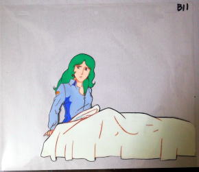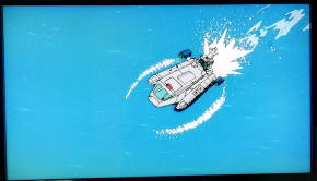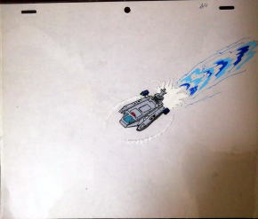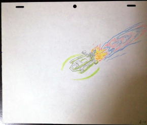 上が手持ちの動画、 セル、下が実際の画面です。 ブルーレイの方が画質いいかな??と思い海外版のブルーレイを引用しました。 左は劇中1~2を争う迷シーン BFSに捕らえられ尋問→病室(傷の治療)→脱走でベットから起きだすアフロディア 見張りも拘束もなしに捕虜を放置しちゃう管理の甘さもることながら 前後に出てくる超絶棒読みのナースがヤバすぎる。 一応キャストとしてナース(看護婦)のCVはテロップにありますが あまんりなので劇バル演出の広川和之さんにお聞きした事があります。 その時、個人的に伺ったお話ではアフレコは2回に分けてやったけど 2回ともこの方は居なかったから別録りで録ったんじゃないか、 この方の事はよくわからない・・・でした。 劇バルのアフレコ台本は当時のムック本に掲載されてるんですが ここにナースのセリフは載ってないんですよ。 多分元々はナースはセリフなしのキャラで 声優志望の若手に場数を踏ませる意味で急遽差し込んだ? ってのが私の推測です。 周りがちゃんとお芝居してるので 全体のご都合主義も相まってこの辺りはマイずっこけシーンベスト3です。 右は土星での決戦に備え海中から飛び立つBFS基地 私たちの未来は何処に? 劇場版バルディオス担当表 によると亀垣一さん担当カット このセルからは伝わりにくいですが劇バルの描き起こしメカニックや戦闘シーンは 今見ても損傷ないレベルの美作画です。 TVの戦闘シーンがちょっと良くなかった(海外出しも多かった)ので 優秀なスタッフを揃えて臨んでいるのが解ります。 |
